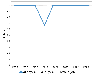 This page summarises information for results of test cases for Last 25 builds in Allergy API - Allergy API - Default Job.