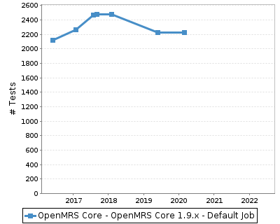 The chart below shows the number of tests across time. This provides a rough indication of the level of testing over time for the build.